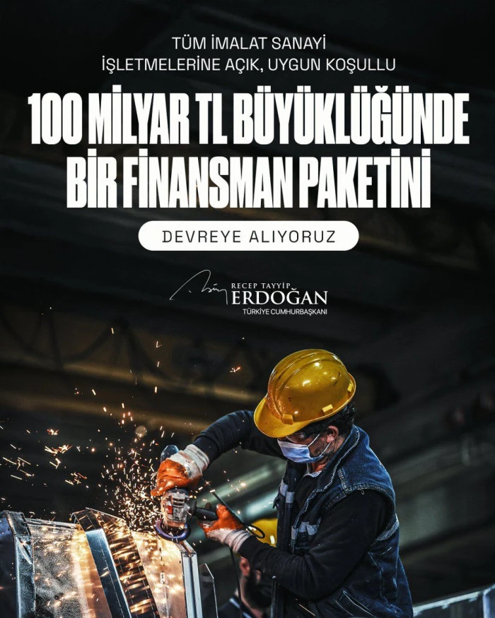 ANKARA (AA) - AYŞE BÖCÜOĞLU BODUR - Sanayiciler, Cumhurbaşkanı Recep Tayyip Erdoğan tarafından duyurulan imalat sanayisine yönelik 100 milyar liralık finansman paketinin üretimin sürdürülebilirliği ve istihdamın korunması açısından büyük önem taşıdığını bildirdi.