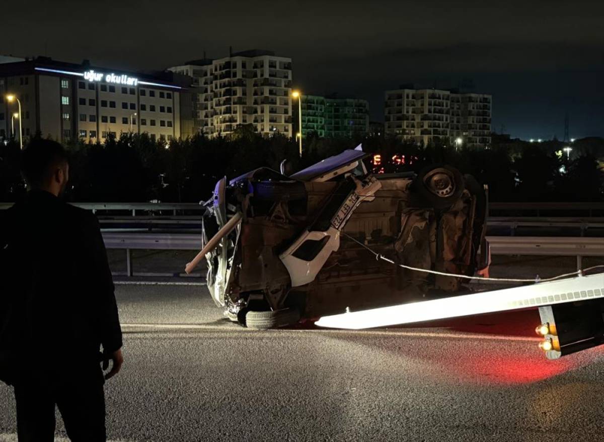 Çarpmanın etkisiyle kontrolden çıkan 34 EFT 223 plakalı otomobil bariyerlere çarpıp ters döndü.