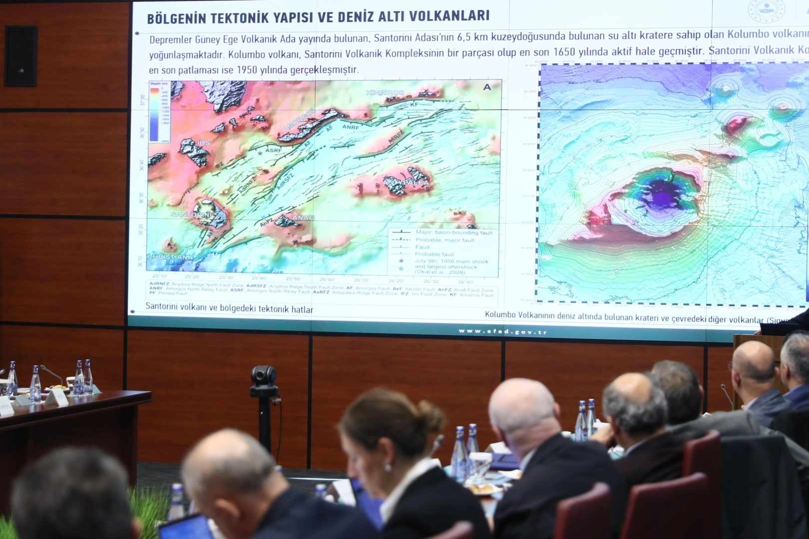 Ege Denizi Santorini Adası ve civarında 28 Ocak 2025 tarihinden itibaren görülen sismik aktivite sonucu meydana gelebilecek muhtemel daha büyük bir deprem, tsunami veya bir volkanik patlamanın ülkemiz kıyıları için oluşturabileceği tehlikeler, alınan önlem ve hazırlıklar AFAD, MTA, Meteoroloji Genel Müdürlüğü, Kandilli Rasathanesi ve Deprem Araştırma Enstitüsü, uzman bilim insanları ve araştırmacılarla değerlendirildi.