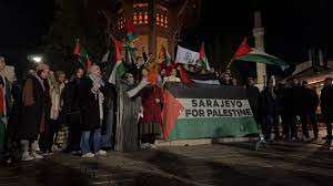 "Filistin özgür olacak" sloganları atan kalabalık, "Saraybosna, Filistin'in yanında" mesajı da gönderdi.