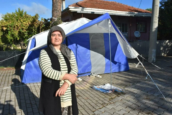 Sındırgı'daki depremde evi hasar gören kadın kızının hediyesi teybi yanından ayırmıyor