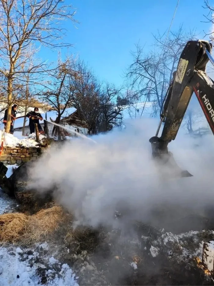 Yangında ahırda bulunan 9 büyükbaş hayvan telef oldu, ahır küle döndü.