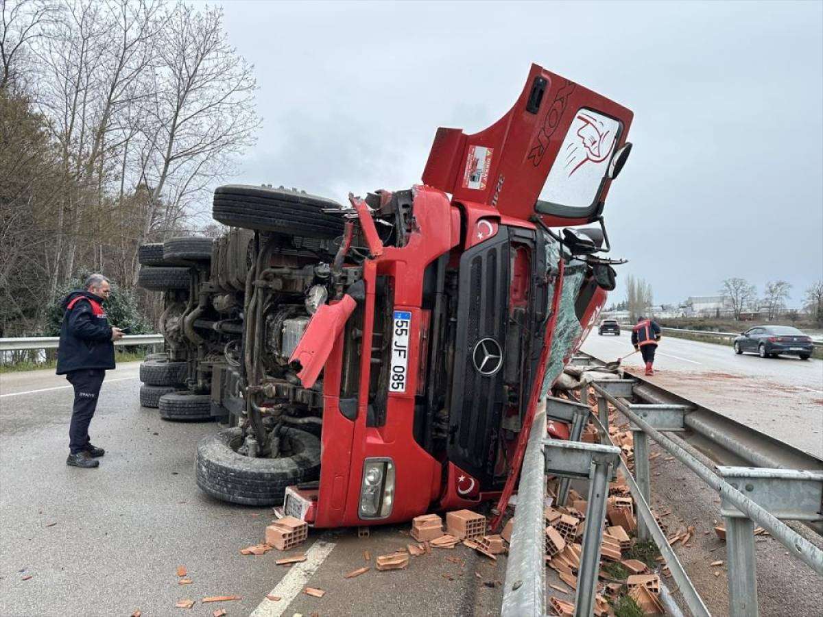 B.G'nin kullandığı 55 JF 085 plakalı tuğla yüklü kamyon, Samsun-Sinop kara yolu Yaykıl mevkisinde bariyerlere çarptıktan sonra devrildi.