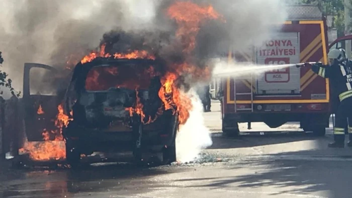 - Yangın sırasında aracın kendiliğinden hareket etmesi güvenlik kamerasınca kaydedildi
