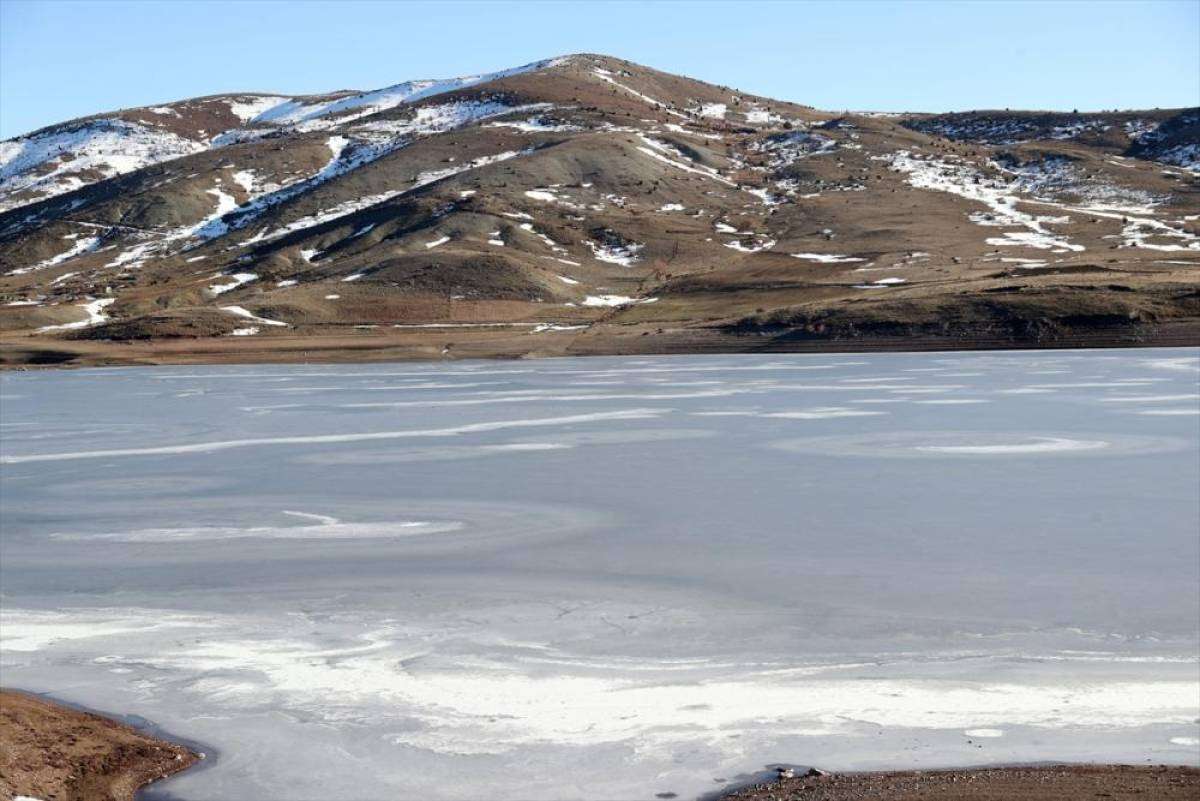 Hava sıcaklığının sıfırın altında 10 dereceye kadar düştüğü Sivas'ta, kent merkezine yaklaşık 50 kilometre uzaklıktaki 2 bin 552 rakımlı Yıldız Dağı'nın güneyinde yer alan Yıldız Göleti'nin yüzeyi soğuk havanın etkisiyle buz tuttu.