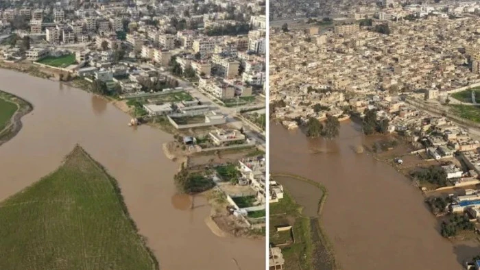 İdlib'in doğusundaki Hammimat Dayer köyünde etkili olan yoğun yağışların ardından Siyha Barajı’ndaki toprak setin çökmesi sonucu köyde yaklaşık 100 ev su altında kaldı.