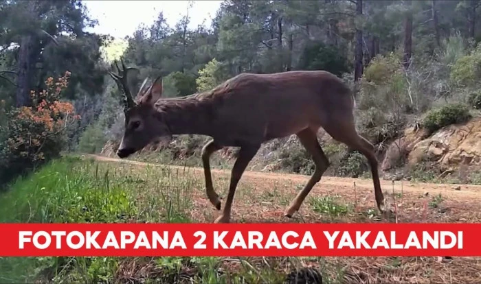 Fotokapana yansıyan görüntülerde 3 karacanın ormanın içinde dolaştığı anlar yer aldı.