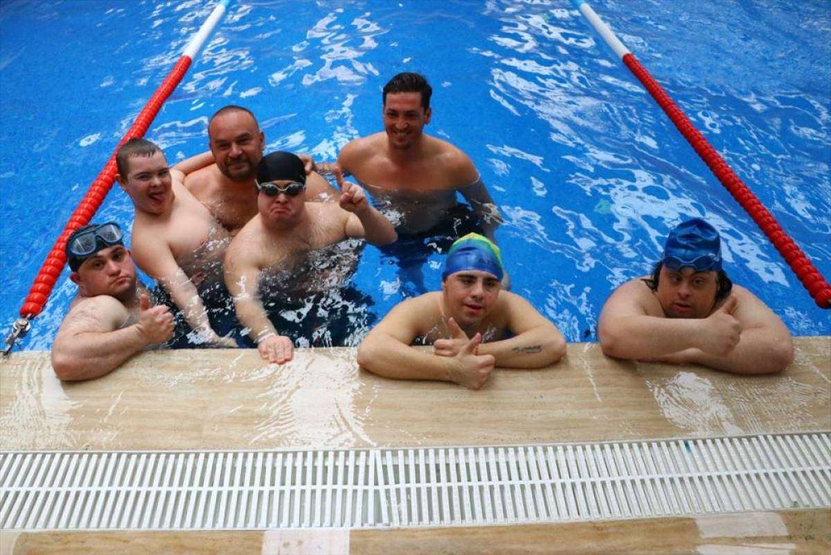 İlk başlarda suya girmekte çekingenlik yaşayan down sendromlu çocuklar, zamanla sevdikleri bu spor dalında mutluluğa kulaç atıyor.