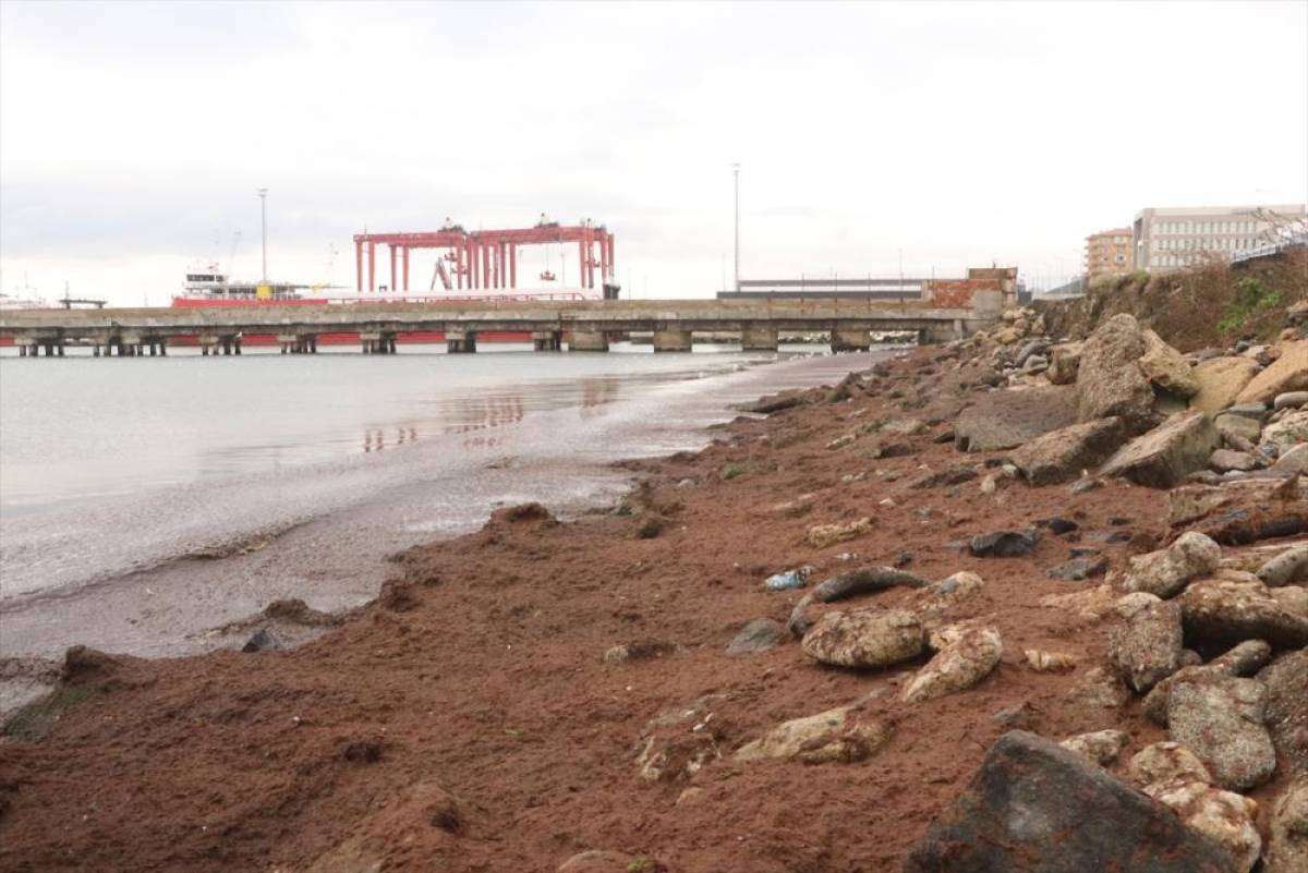 TEKİRDAĞ (AA) - Tekirdağ'da kuvvetli rüzgar nedeniyle sahilin bir kısmı kırmızı yosunla kaplandı.