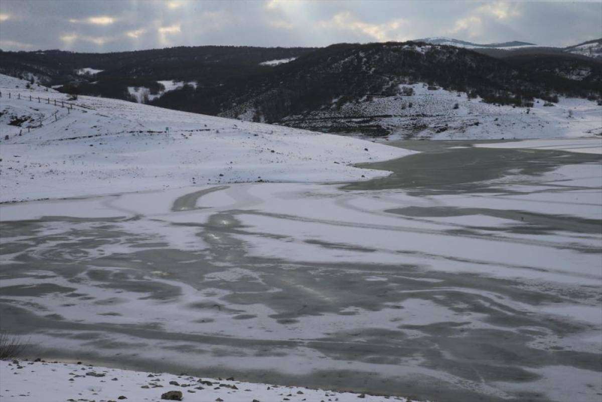TOKAT (AA) - Tokat'ta soğuk hava nedeniyle Artova Göleti'nin yüzeyi buzla kaplandı.