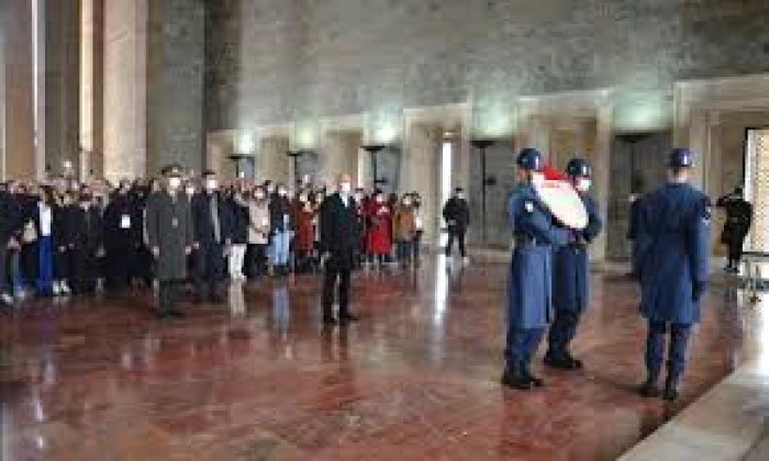 Atalay başkanlığındaki Türk Devletleri Sendikalar Teşkilatı Birliği üyelerinden oluşan heyet, Aslanlı Yol'dan yürüyerek Gazi Mustafa Kemal Atatürk'ün mozolesine geldi.