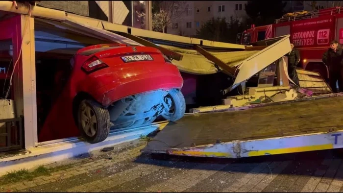 Üsküdar'da iş yerine giren otomobilin sürücüsü yaralandı