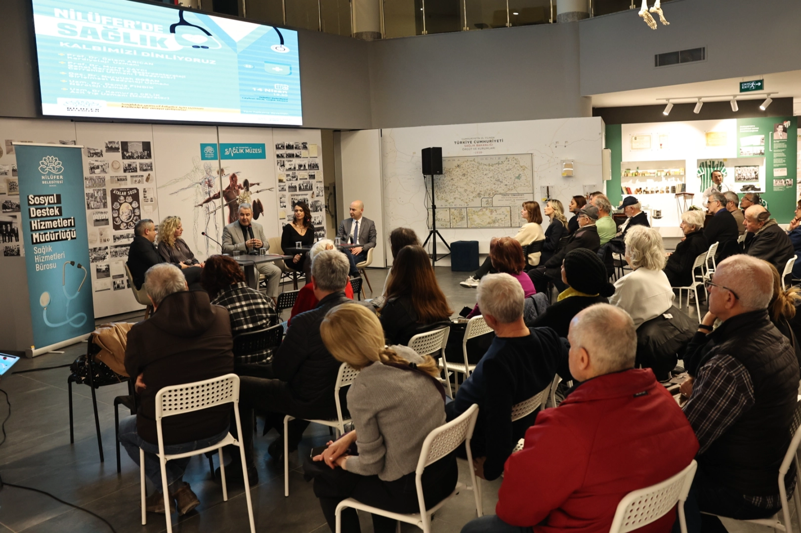 Nilüfer Belediyesi Dr. Ceyhun İrgil Sağlık Müzesi’nde düzenlenen söyleşide Prof. Dr. Murat Çaycı ve Uzm. Dr. Kamuran Çelik moderatörlüğünde, Prof. Dr. Özlem Arıcan, Doç. Dr. Nurullah Doğan ve Uzm. Dr. Damla Fındık, kalp sağlığı ile ilgili bilgilendirmelerde bulundu.