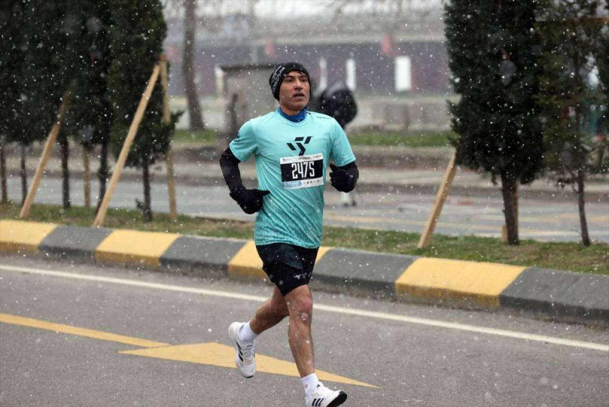 Maratonun başladığı anlarda etkisini gösteren kar yağışı renkli görüntüler oluşturdu. Beyaza bürünen güzergahta koşan bazı sporcuların, kardan korunabilmek için yanlarında bulunan poşet ve giysileri kullandıkları görüldü.