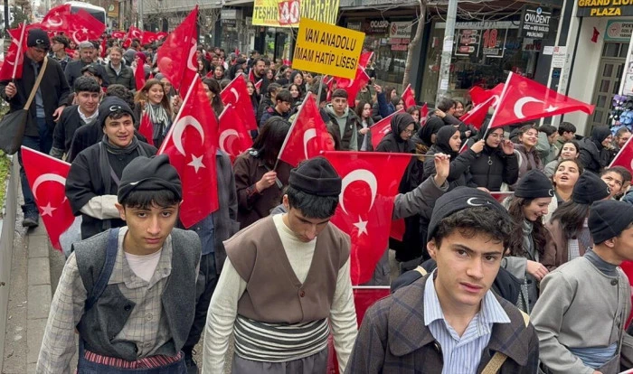 İl Milli Eğitim Müdürlüğünce düzenlenen anma programı için Kazım Karabekir Caddesi'nde bir araya gelen öğrenci ve öğretmenler, Türk bayraklarıyla Kurtuluş Parkı'ndaki 120 Vanlı Kahraman Çocuklar Anıtı'na kadar yürüdü.