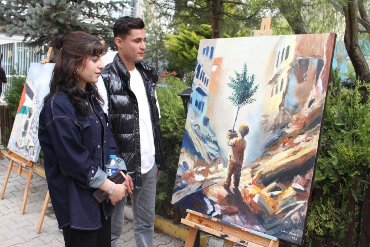 VAN (AA) - Van Güzel Sanatlar Lisesi öğrencilerince "Filistin'de çocuk olmak" adlı resim sergisi düzenlendi.