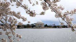 Başkentte, eski ABD başkanlarından Thomas Jefferson'ın anıt mezarının çevresindeki parklarda, kiraz ağaçlarının çiçeklendiğini görenler, hafta içi olmasına rağmen bölgeye akın etti.