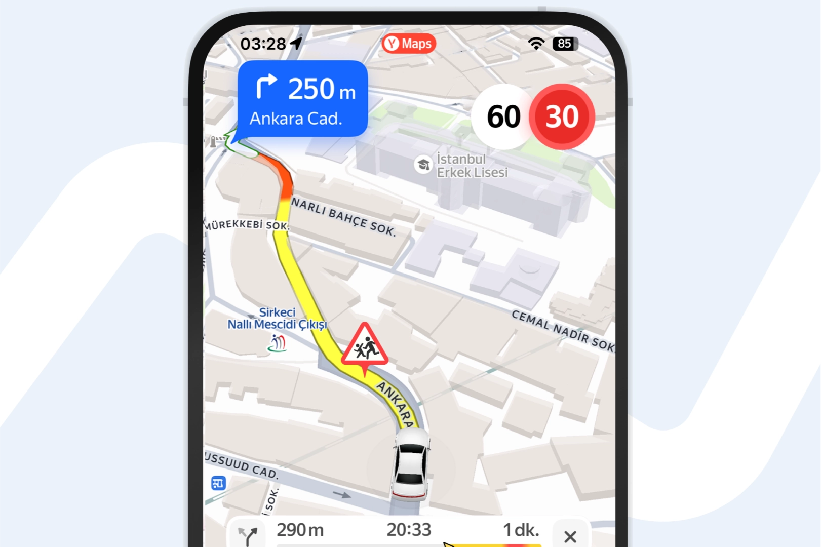 İSTANBUL (İGFA) - Milyonlarca öğrenci yeni eğitim-öğretim dönemine başlarken Yandex Maps, Türkiye'deki sürücüleri okul çevrelerinde daha dikkatli olmalarını sağlamak amacıyla yeni bir özellik devreye aldı. Bu özellikle birlikte sürücüler, okullara yaklaştıklarında sistem tarafından önceden bilgilendirilerek hızlarını azaltmaları konusunda uyarılıyor.