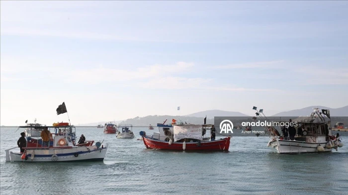 Voloslu balıkçılardan Nikos Stavrianos ise "Çiftçiler yalnız değil, aynı sorunları biz de yaşıyoruz. Bu yüzden denizden destek vermek görevimizdi." ifadelerini kullandı.