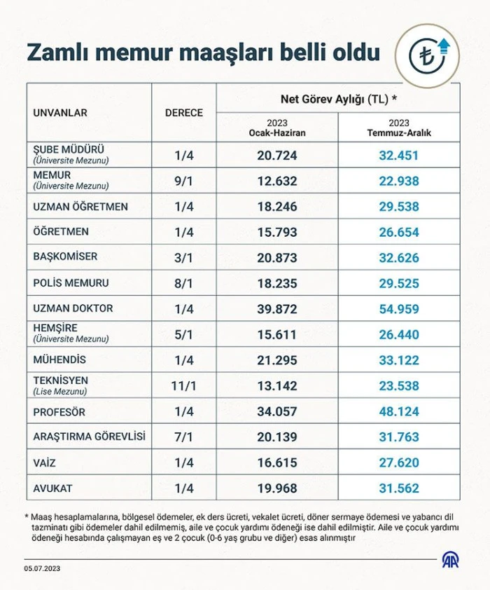 ANKARA (AA) - HÜLYA ÖMÜR UYLAŞ / MERT DAVUT - Memur ve memur emeklilerinin 2026 yılının ilk 6 ayında alacağı zamlı maaşlar ile SSK ve Bağ-Kur emeklilerinin aylıklarındaki artış oranları belirlendi.