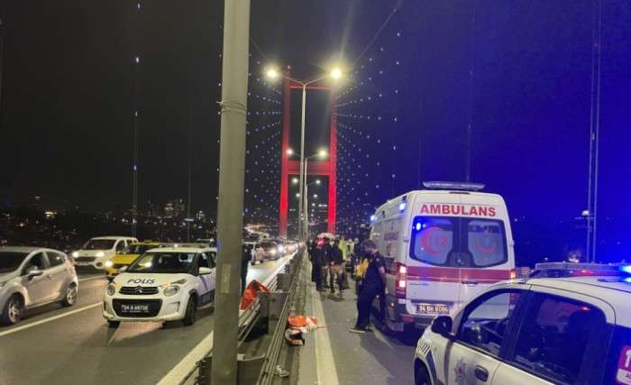 Alınan bilgiye göre 15 Temmuz Şehitler Köprüsü'nden Avrupa yakasına seyreden 34 FRG 614 motosiklet bariyerlere çarptı. Çarpmanın etkisiyle motosikletteki iki kişi yola savrulurken motosiklet yaklaşık 300 metre sürüklenerek bariyerlere çarpıp durdu.