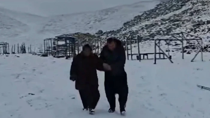 Gedikli Mahallesi Çayırgölü Yaylası'nda büyükbaş hayvan yetiştiren Cennet Sarıtaş, ilçenin yüksek kesimlerinde akşam saatlerinde etkili olan kar yağışı nedeniyle bölgede mahsur kaldı.