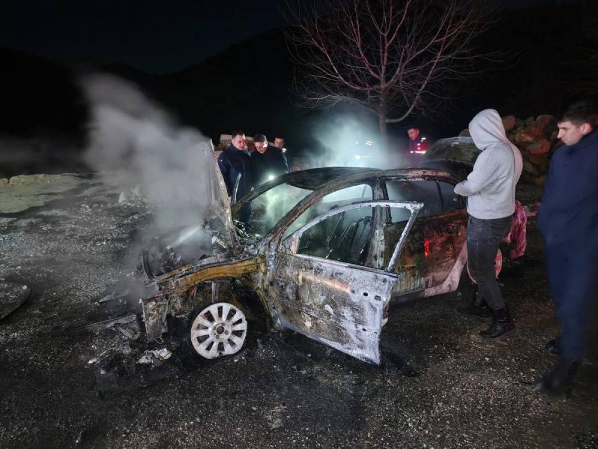 Ekiplerin müdahalesiyle söndürülen yangında, araç kullanılamaz hale geldi.