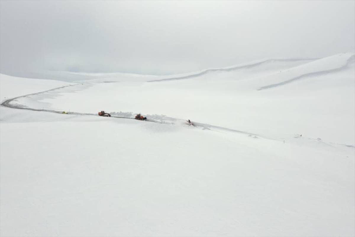 Bölgede 3 iş makinesiyle karla mücadele çalışması yapan ekipler, 2 bin 270 rakımdaki Yukarıkent Geçidi'nde zorlu hava koşullarına rağmen çalışmasını sürdürüyor.