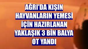 Ağrı'da kışın hayvanların yemesi için hazırlanan yaklaşık 3 bin balya ot yandı