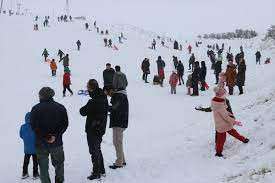 Kayak merkezinde yoğunluk oluşturan çocuklar, aileleriyle kızak yaparak eğlendi.