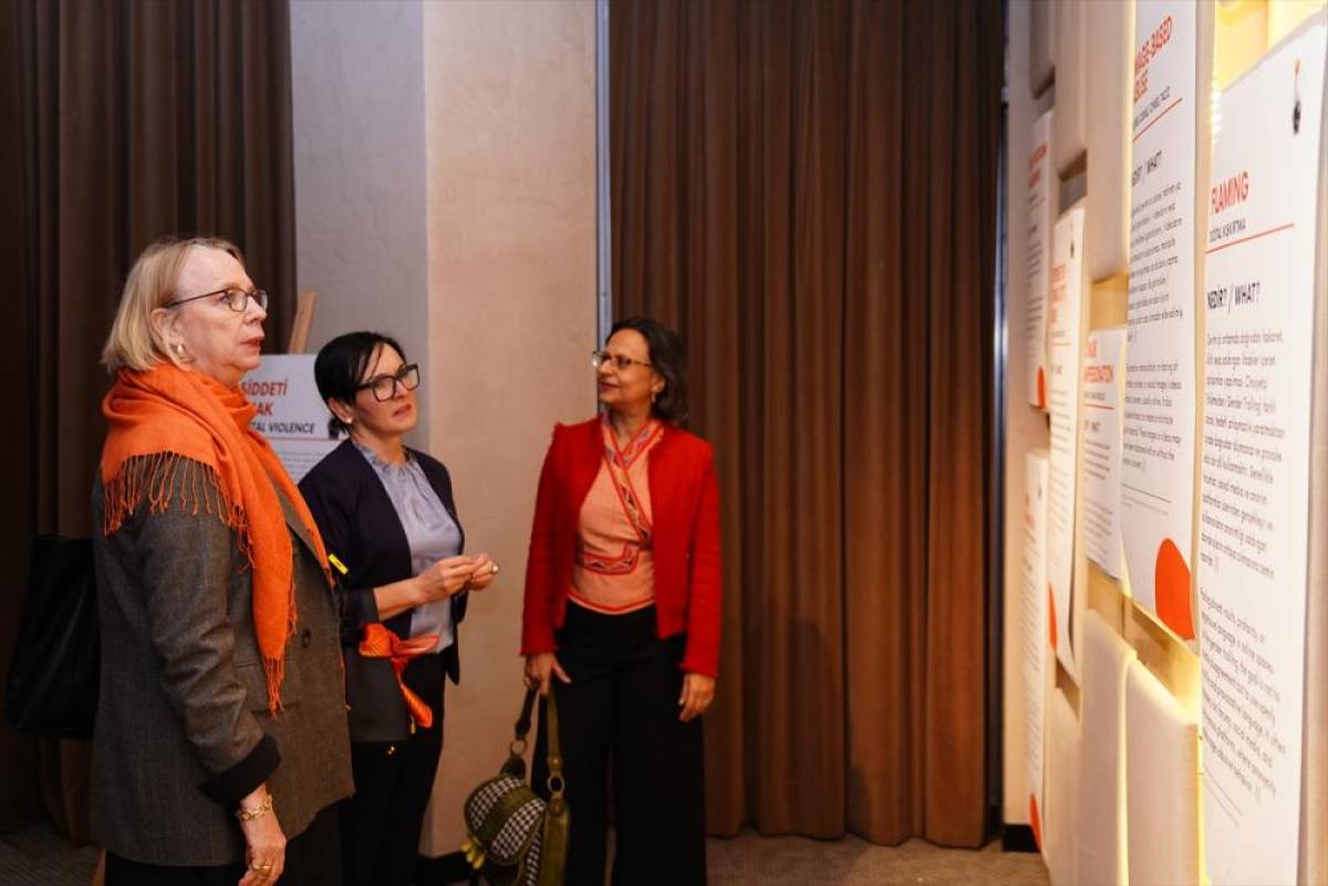 Ankara'da düzenlenen "Kadınlara ve Kız Çocuklarına Yönelik Dijital Şiddete Noktayı Koy" kampanyasının açılış programına, BM Kadın Birimi Türkiye Ülke Direktörü Maryse Guimond ve BM Nüfus Fonu Türkiye Temsilcisi Mariam Khan, sivil toplum kuruluşları temsilcileri, büyükelçiler ve çok sayıda davetli katıldı.
