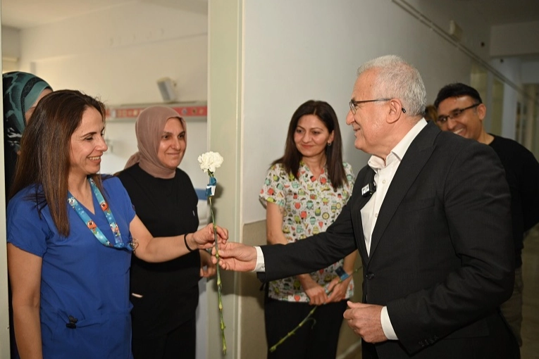 Antalya'da Kumluca Belediye Başkanı Uzman Dr. Mesut Avcıoğlu, 14 Mart Tıp Bayramı dolayısıyla sağlık çalışanlarını ziyaret etti.