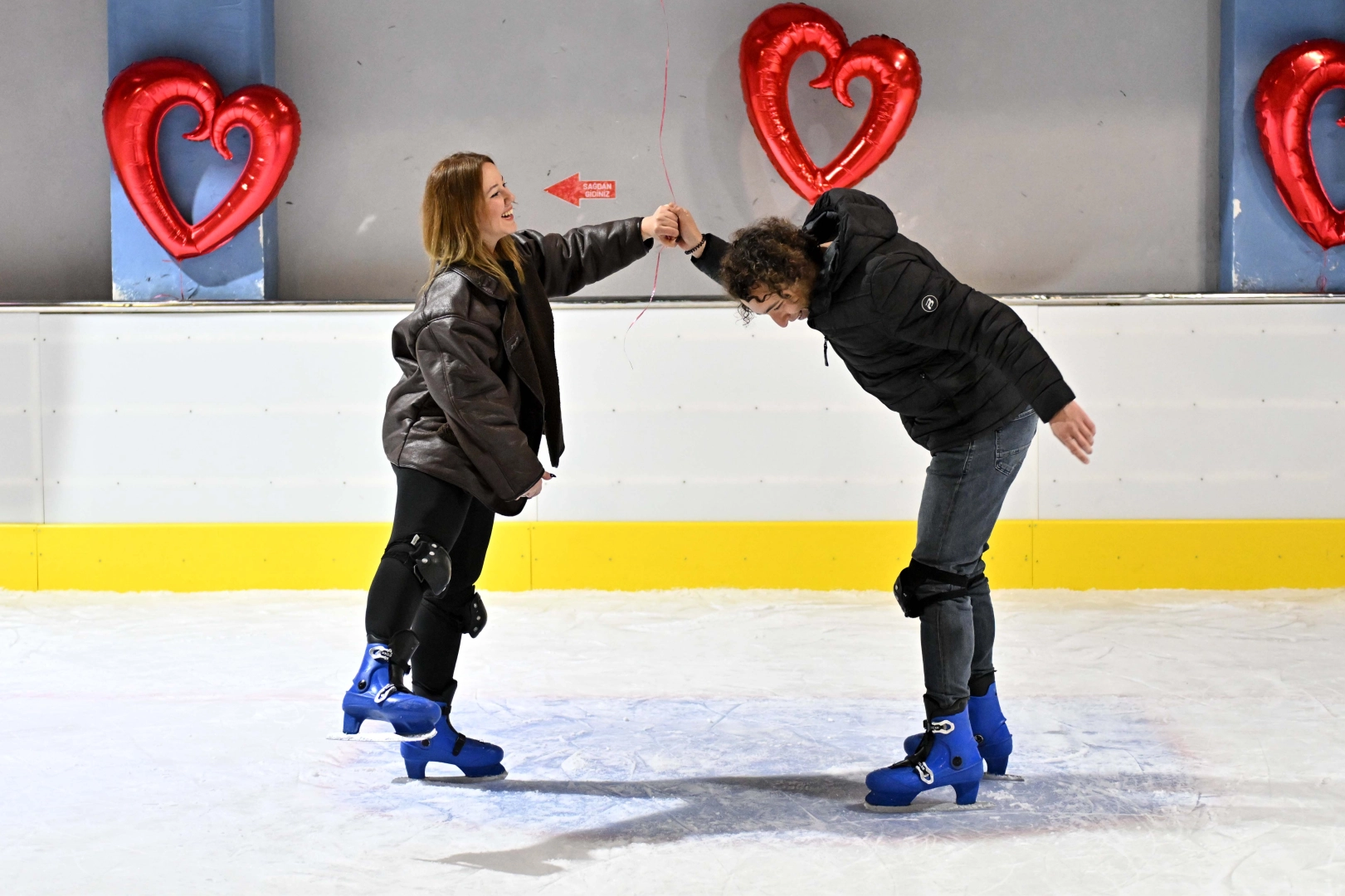 Kırmızı kalpli balonlarla süslenen pist, 14 Şubat Cuma günü saat 24.00’e kadar açık olacak.