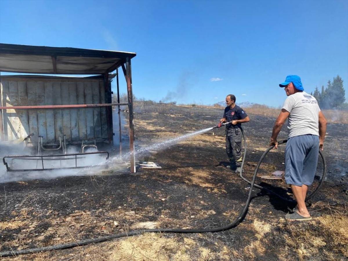 Akçaalan Mahallesi'ndeki boş arazide Kürşat Tufan'a ait güvercinlerin bulunduğu kulübede, henüz bilinmeyen nedenle yangın çıktı.