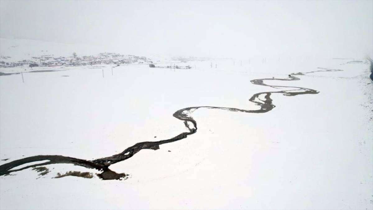 Ardahan'ın Göle Ovası'ndaki karla kaplı menderesler dronla görüntülendi