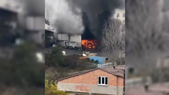 Arnavutköy'de tır tamirhanesinde çıkan yangın söndürüldü