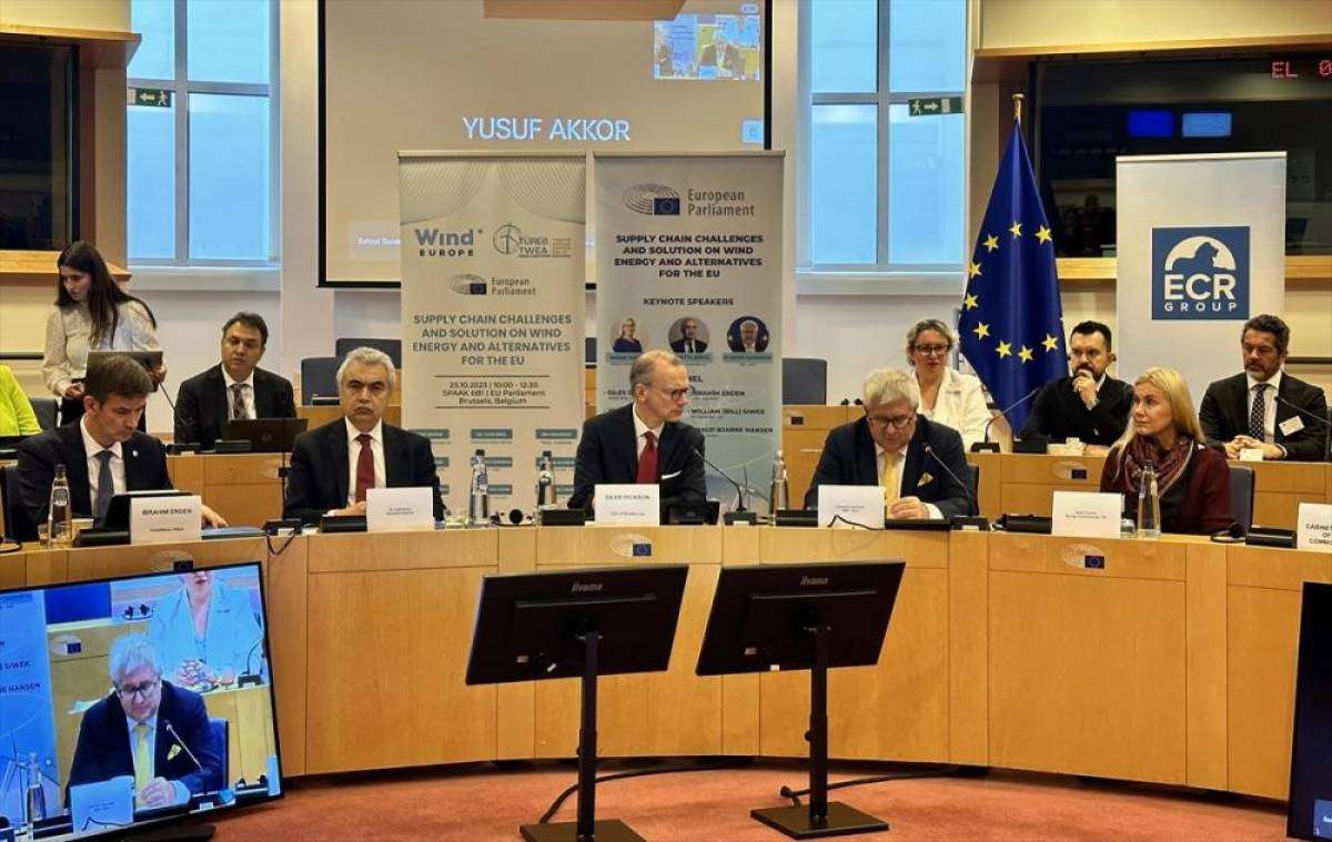 Simson, Avrupa Parlamentosu'nda Türkiye Rüzgar Enerjisi Birliği (TÜREB) ve Avrupa Rüzgar Enerjisi Birliği (Wind Europe) tarafından Rüzgar Enerjisi Tedarik Zinciri Zorlukları Çözümleri ve Avrupa Birliği (AB) Bölgesi İçin Alternatifler başlıklı toplantının açılışında konuştu.