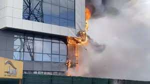 Binanın iç kısmına da sirayet eden yangına itfaiye ekiplerinin müdahalesi sürüyor.