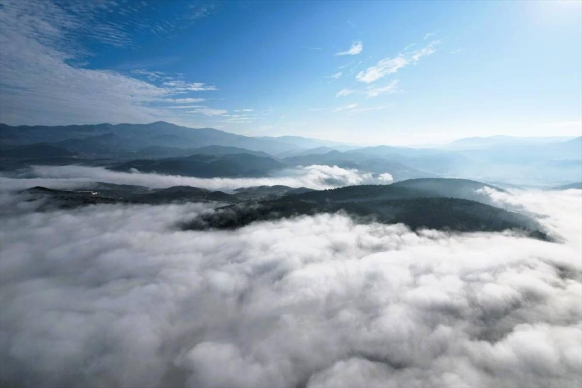 Yoğun sis, dronla da görüntülendi.