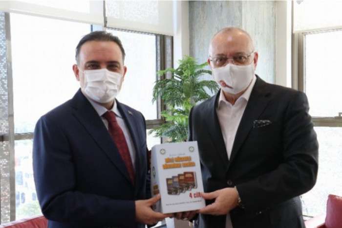 Manisa Büyükşehir Belediye Başkanı Cengiz Ergün, AK Parti MKYK Üyesi ve Manisa Milletvekili Murat Baybatur’u makamında ağırladı.MANİSA(İGFA)- Manisa Büyükşehir Belediyesi’nin yeni hizmet binasının hayırlı olması temennisinde bulunan AK Parti MKYK Üyesi ve Manisa Milletvekili Murat Baybatur, Başkan Cengiz Ergün’e çalışmalarında kolaylıklar diledi. Ziyaretten duyduğu memnuniyeti ifade eden Manisa Büyükşehir Belediye Başkanı Cengiz Ergün, Baybatur’a ‘Yüzüncü Yılında Milli Mücadele Döneminde Manisa’ isimli 4 ciltlik eseri armağan etti.