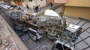 Beton mikseri durdurulamayarak yaklaşık 5 metre yükseklikten alt kısımdaki başka bir binanın otoparkındaki 4 aracın üzerine düştü.