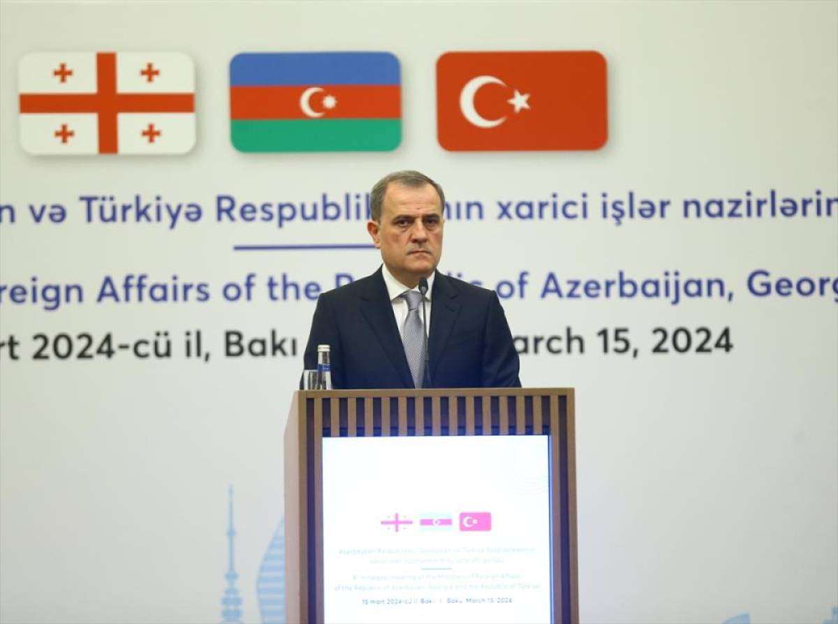 Bayramov, Türkiye-Azerbaycan-Gürcistan Üçlü Dışişleri Bakanları 9. Toplantısı sonrasında mevkidaşları Hakan Fidan ve İlia Darçiaşvili ile ortak basın toplantısında konuştu.
