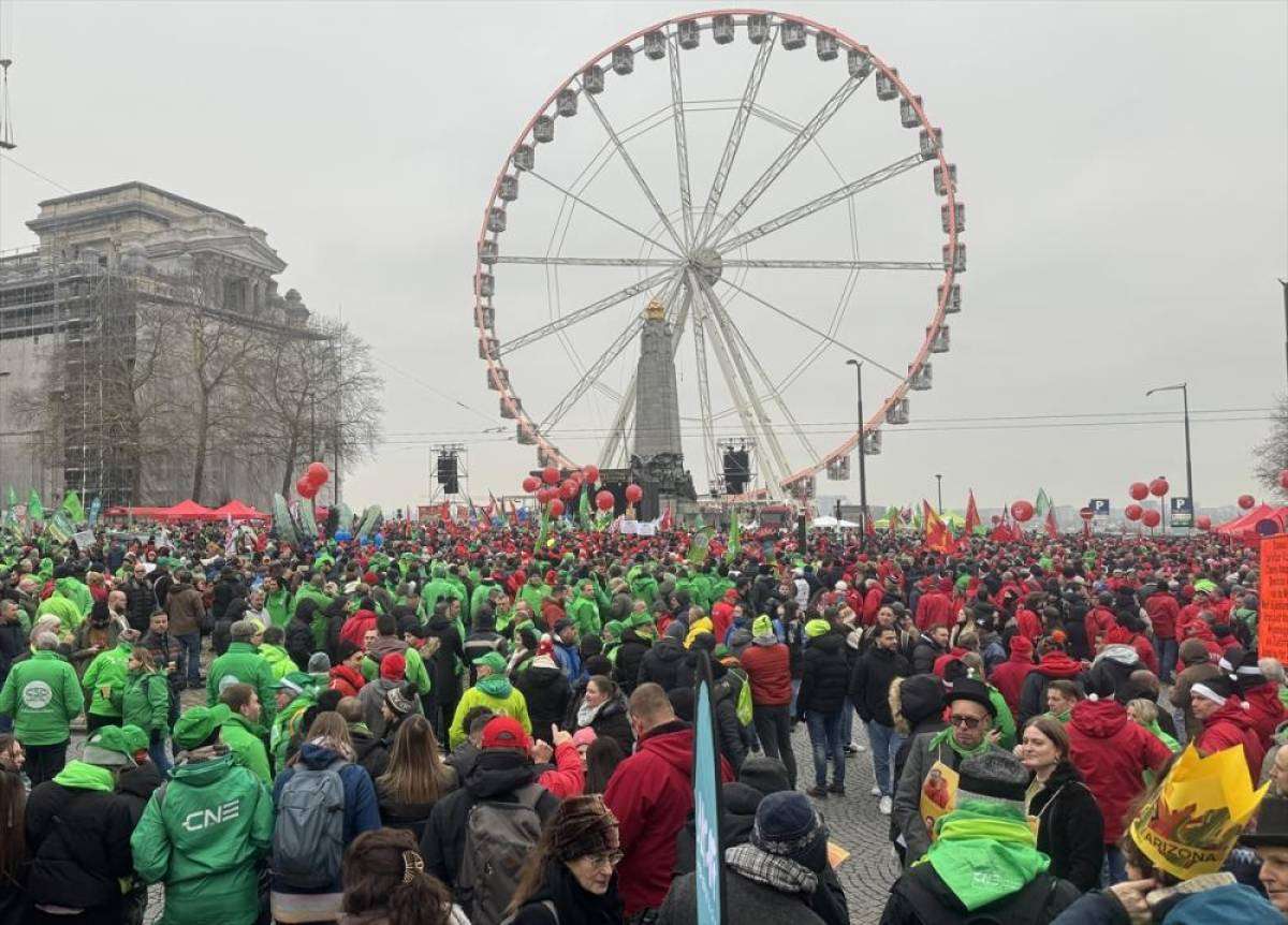 Belçika'daki bütün işçi sendikalarının çağrısı üzerine binlerce kişi, Brüksel Adalet Sarayı önünde bir araya geldi.