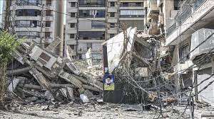 Dahiye'de İsrail'in hedef aldığı çok katlı onlarca binanın yerle bir olduğu ve çevredeki binaların da büyük hasar gördüğü gözlendi.