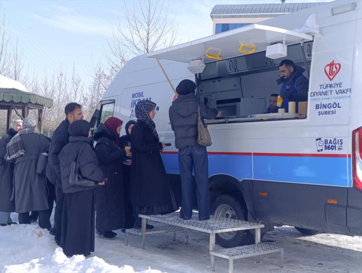 İmamoğlu, İl Müftülüğü ve TDV Bingöl Şubesi koordinasyonunda din görevlilerinin özverili katkılarıyla hizmet vermeye başlayan araçla üniversite, hastane ve kentin farklı noktalarında vatandaşlara sıcak çorba dağıtıldığını belirtti.