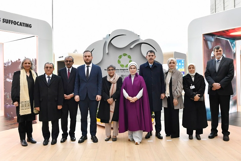 Birleşmiş Milletler (BM) Sıfır Atık Yüksek Düzeyli Şahsiyetler Danışma Kurulu Başkanı Emine Erdoğan, BM'nin 30 Mart Uluslararası Sıfır Atık Günü özel etkinliğinde konuşma yapmak üzere gittiği New York'ta, Çevre, Şehircilik ve İklim Değişikliği Bakanı Murat Kurum ile birlikte "Sıfır Atık Enstelasyon Sergisi"ni ziyaret etti.