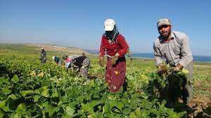 İlçenin Kıyıdüzü köyünde tarlaya giren çiftçiler, ürünleri toplayarak torba ve kasalara doldurdu.