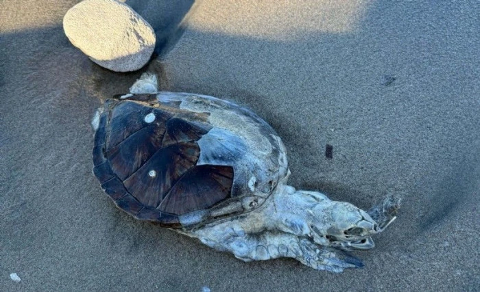 Bölgeye gelen zabıta ekibinin yaptığı kontrolde, deniz kaplumbağasının ölü olduğu belirlendi.