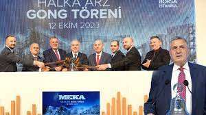 Beton santrali ile kırma eleme tesis-ekipman üretimi olmak üzere iki ana konuda faaliyet gösteren, inşaattan madenciliğe, geri dönüşümden agrega üretimine kadar birçok sektörde kullanılan tesis, makine ve ekipman üretiminde geniş ürün gamına ve global bilinirliğe sahip endüstriyel bir üretici olan Meka’nın gong töreni, Borsa İstanbul Genel Müdürü Korkmaz Ergun, Meka Yönetim Kurulu Başkanı Mehmet Kaybal, Meka yöneticileri, Vakıf Yatırım, Türkiye Kalkınma ve Yatırım Bankası temsilcileri ve çok sayıda davetlinin katılımıyla gerçekleştirildi.