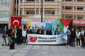 Caminin önünde toplanan öğrenci toplulukları, sivil toplum kuruluşu temsilcileri ve üniversite yönetimi "SayStop", "Filistin'de zulme dur de", "Müslüman zulme boyun eğmez" ve "Filistin'in başkenti Kudüs'tür", "Filistin'de katliam var", "Türkiye walks in unity with campuses worldwide for Palastine" yazılı dövizler taşıdı.
